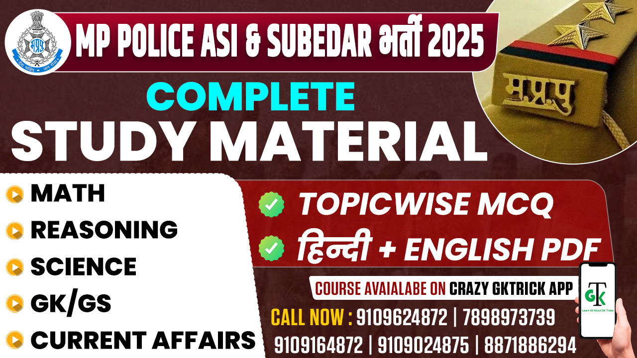 Crack the MP Police ASI Exam 2025 with confidence! This complete study material package is specially designed as per the latest syllabus. Covering Math, Reasoning, General Studies, Computer, and Science in PDF format, it provides clear concepts, exam-oriented notes, and practice questions to help you prepare smartly and effectively.